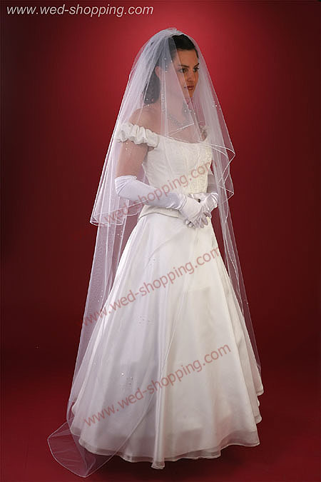 Tulle Wunderschöner langer Brautschleier mit Strass. Der Schleier hat eine Breite von 2m. Die einzelnen Stufen haben eine Länge von 80 und 210cm. Der Schleier ist mit ca. 210 opalisierenden Kristallen geziert. Erhältlich in den Farben: weiß, ivory/ecru/creme. Lange Brautschleier mit opalisierenden Kristallen
